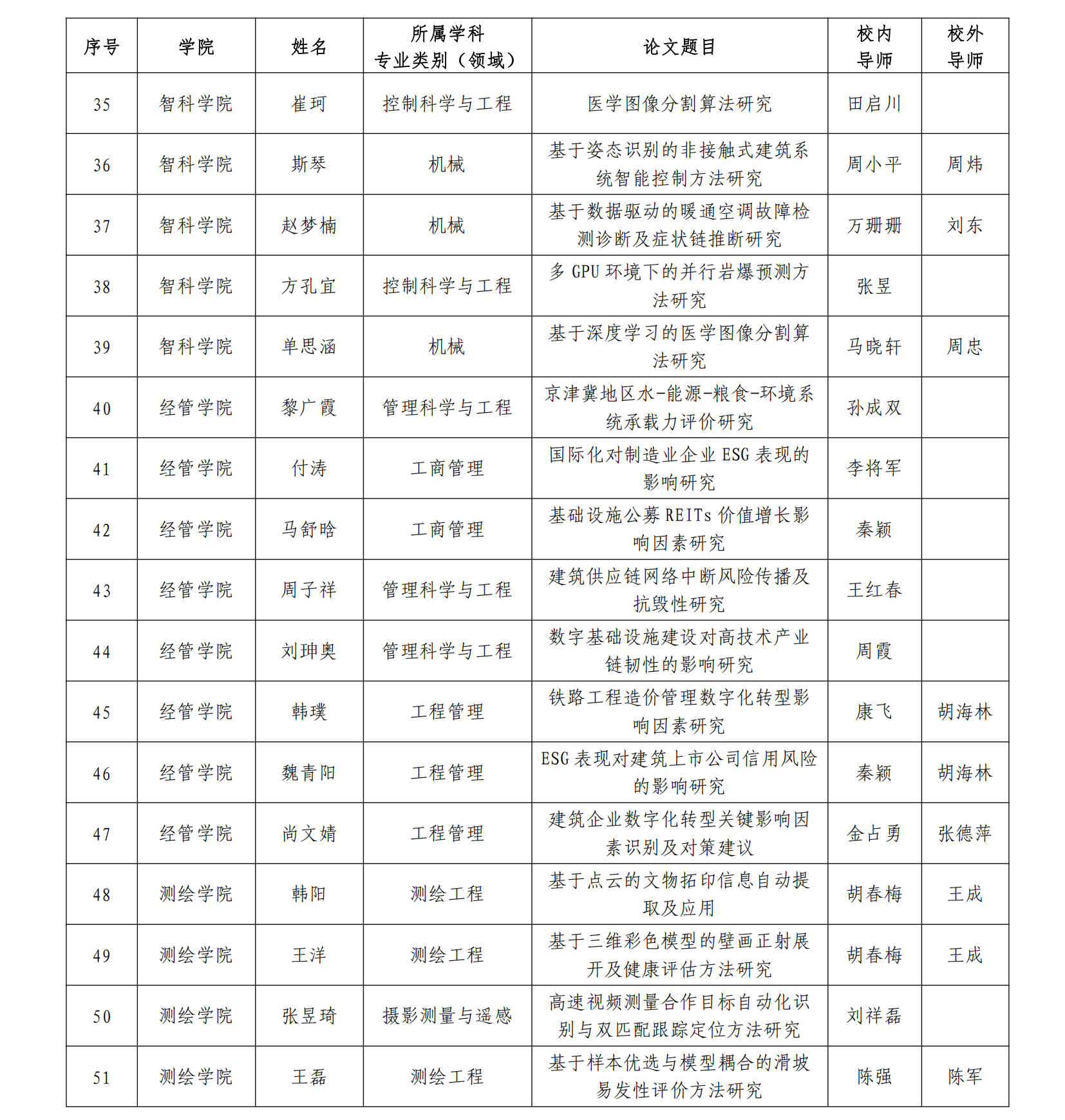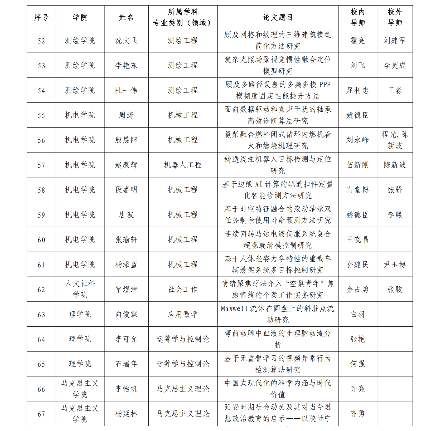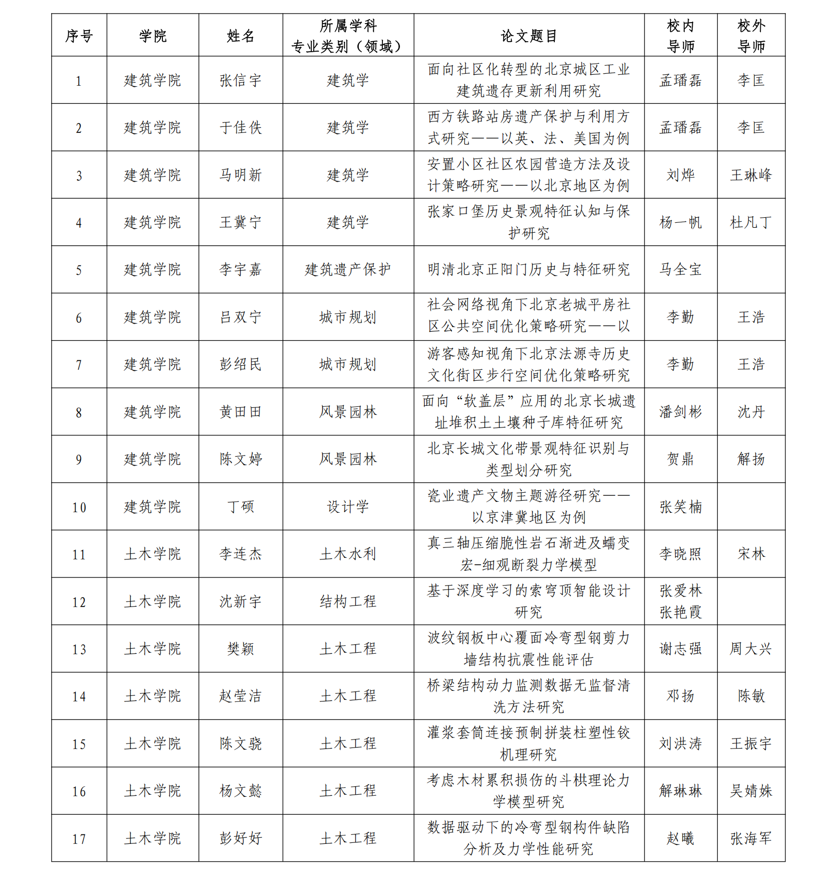 根据《bv伟德国际1946官网优秀硕士学位论文评选办法》(北建大研发〔2025〕5 号)和《关于开展 2024/2025 学年优秀硕士学位论文评选工作的通知》(研字〔2025〕31 号),研究生院组织开展 2024/2025 学年优秀硕士学位论文评选工作,经各学位评定分委员会推荐、研究生院审核、学位评定委员会审议,张信宇等67 名 2025 届毕业研究生的学位论文被评为校级优秀硕士学位论文,名单如下: